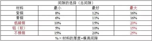 (1) 最佳间隙:剪切裂缝结合,均衡冲压力、工件质量和模具寿命。